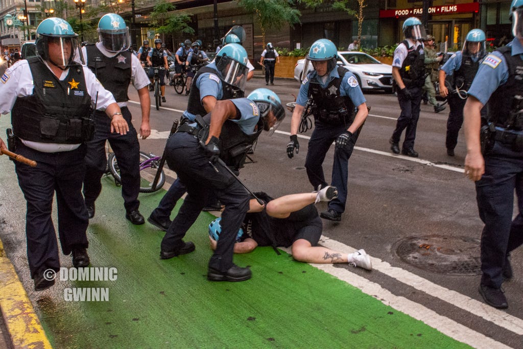 Chicago police arrest an activist at Dearborn and Randolph, Aug. 15, 2020