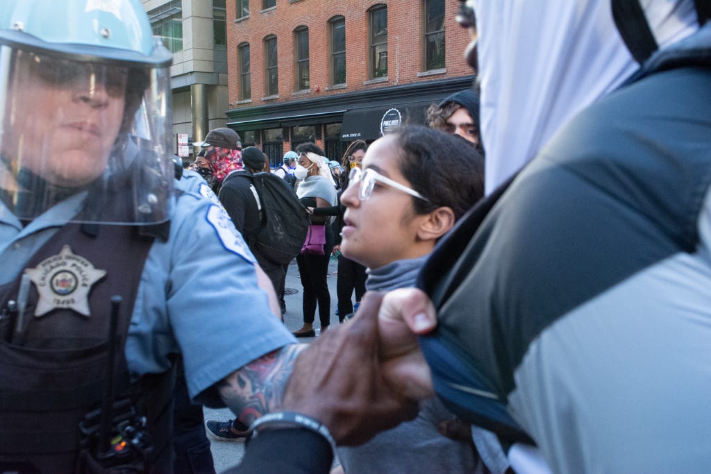 CPD Officer Birdsong grabs a protester on Saturday, May 30, 2020. Photo by Dominic Gwinn