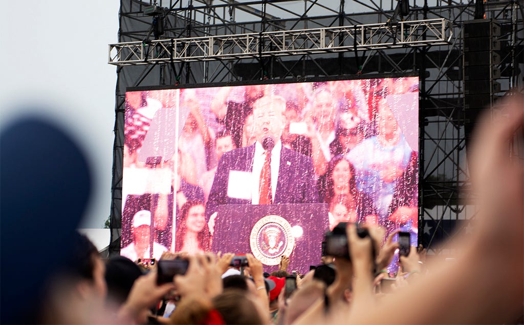 Donald Trump speaks at the “Salute To America” rally in Washington D.C., July 4, 2019. Photo by Dominic Gwinn